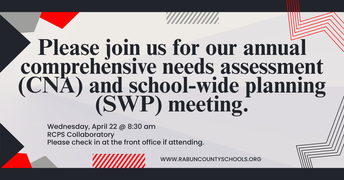 Please join us for our annual comprehensive needs assessment and school-wide planning meeting.